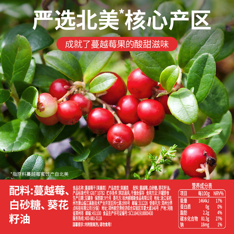 百草味蔓越莓干500g罐装 果干果脯蜜饯烘焙用水果办公室零食小吃