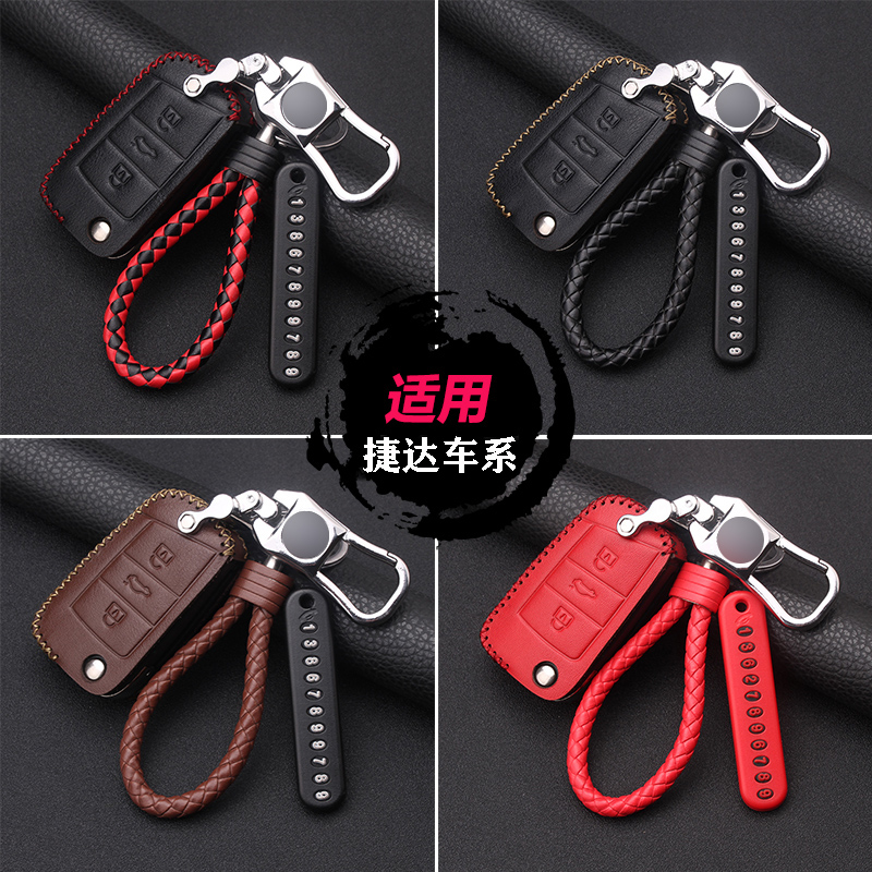 专用VA7汽车真皮钥匙套 捷达VS7 遥控包保护壳扣 VA3 一汽捷达VS5