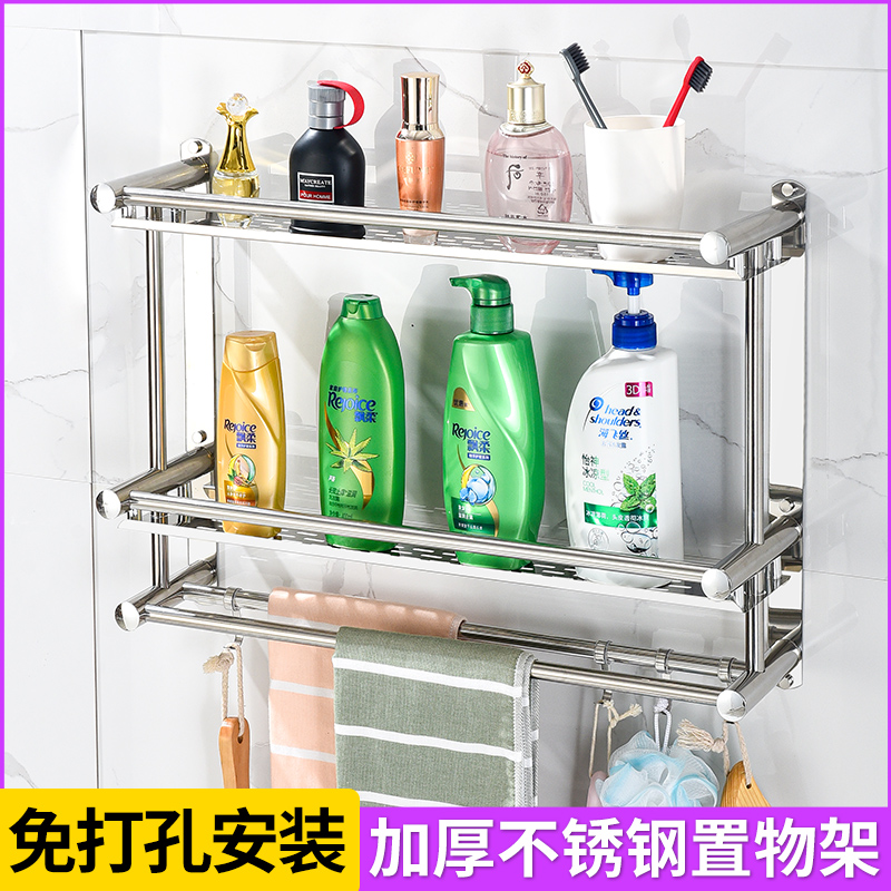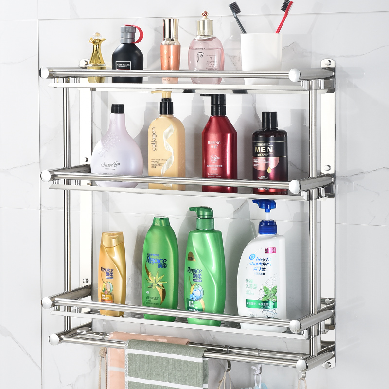 不锈钢三层卫生间置物架免打孔浴室厕所3层收纳架吸壁式 壁挂打孔