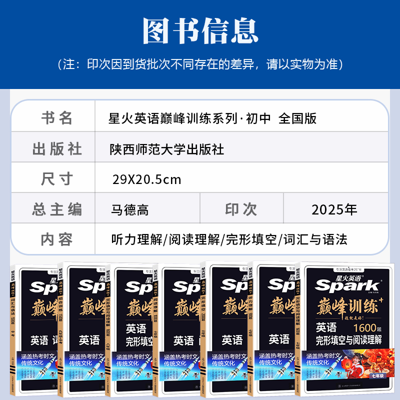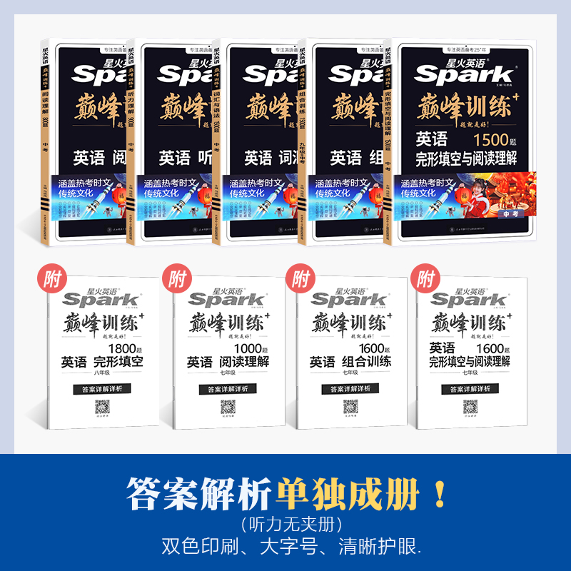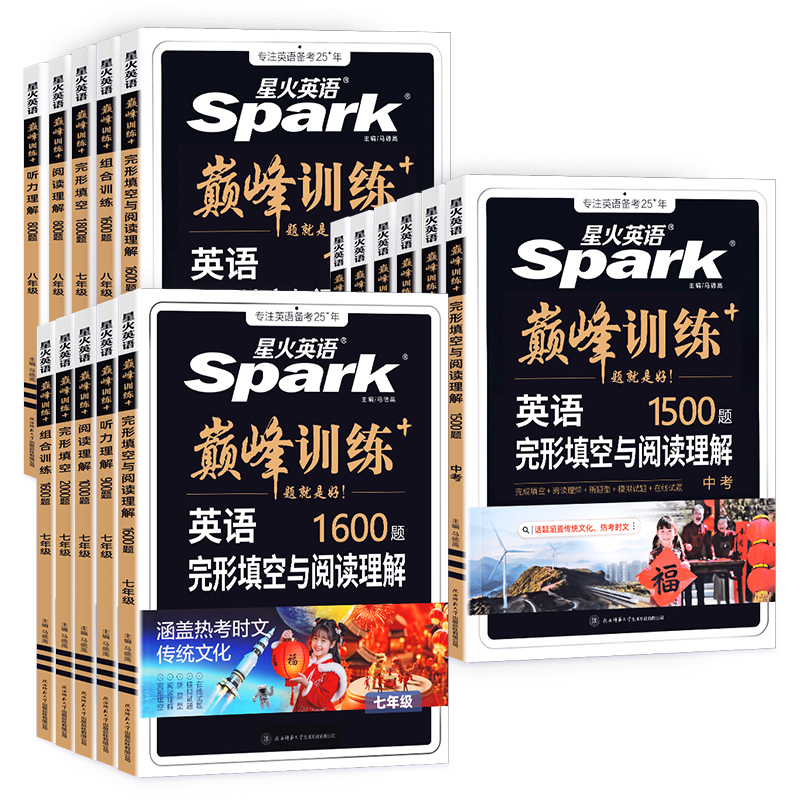 2026新版 星火英语七年级八年级英语完形填空与阅读理解听力理解初一二九年级中考英语真题组合专项突破训练初中英语巅峰训练习题册
