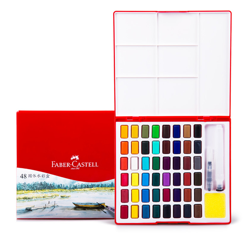德国辉柏嘉固体水彩24色水彩颜料套装 透明便携初学者进口美术专用组合学生儿童画画涂色手绘写生白色水彩绘画