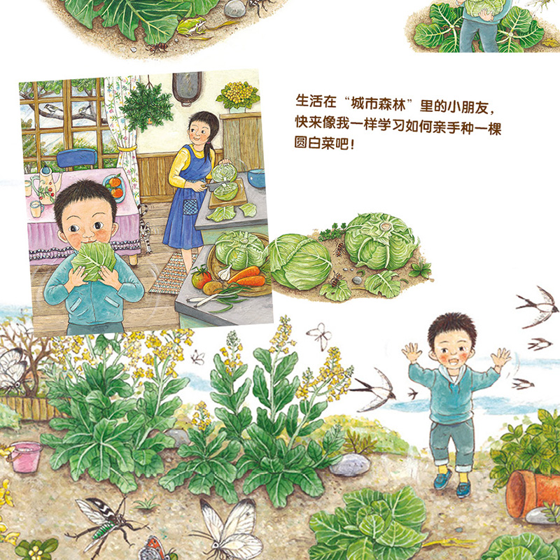 绘本图画书认识圆白菜动植物生态教育2 野荷花启发精装 8周岁儿童早教启蒙认知亲子读物 当当网童书 第一次种圆白菜我家附近
