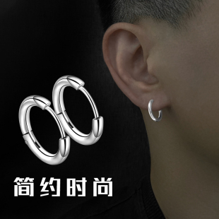 纯银耳圈耳环男女潮款 气质耳钉精致圆圈耳骨钉养耳洞银饰 耳扣韩版