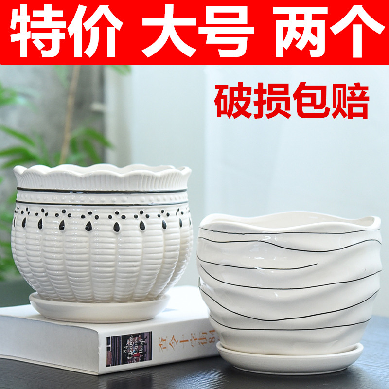 花盆陶瓷白色轻奢简约特价 清仓大号带托盘家用绿萝吊兰多肉小花盆