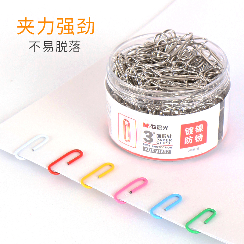 晨光回形针办公用品彩色书签创意可爱回型针夹子u形针防锈2000枚回旋针小号回行针 曲别针固定批发文具 包邮
