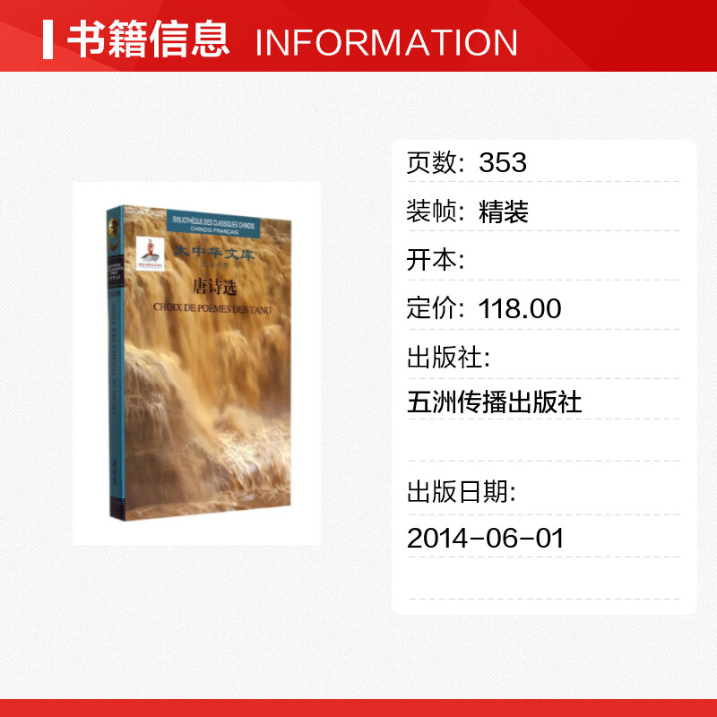 大中华文库 社 五洲传播出版 译者 汉法对照 精 法语文学 李白 唐 图书籍 唐诗选 著作 新华书店正版 许渊冲