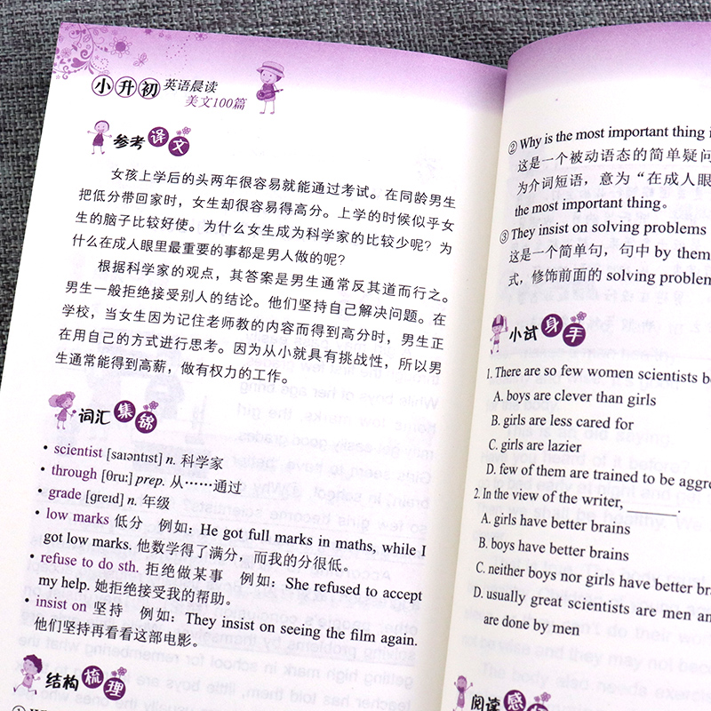 随书附赠外教朗读MP3光盘 小升初英语晨读美文100篇 二维码 扫描音频下载 小学生英语课外阅读文章 正版 提高学生阅读理解能力 包邮
