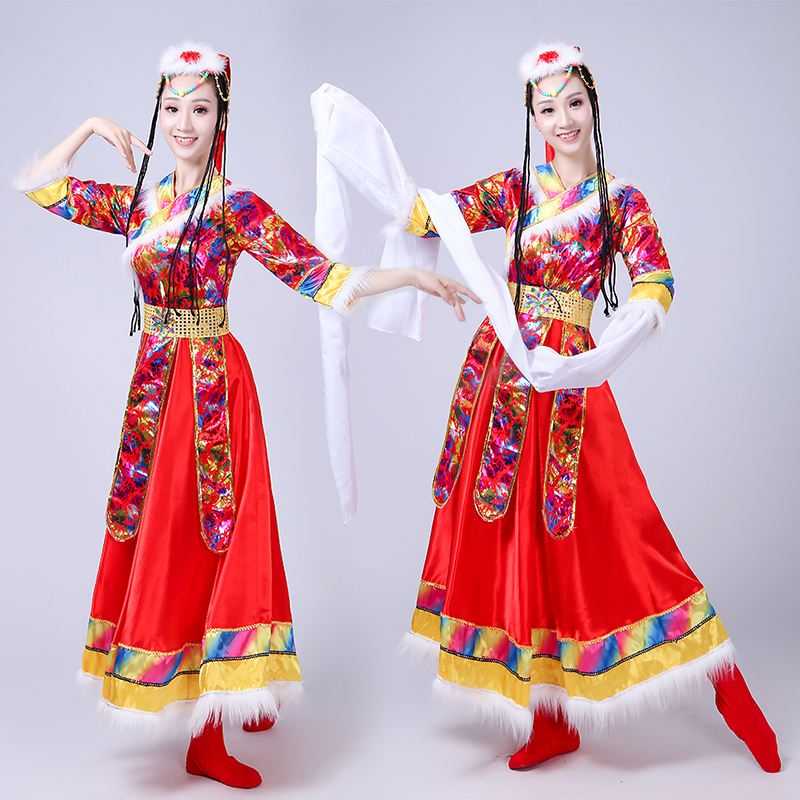女演出服民族风西藏装 水袖 长袖 舞蹈表演套装 卓玛 成人短袖 藏族服装