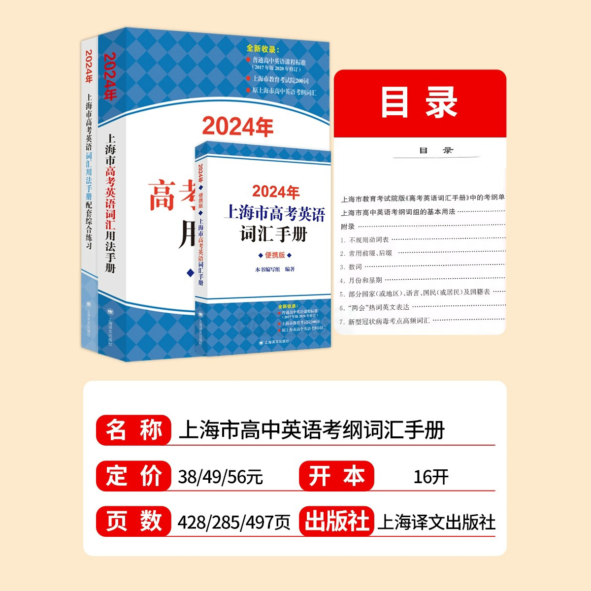 社2025 高考例句涵盖历届中译英高考考题上海译文出版 现货速发2026年上海市高中英语考纲词汇用法手册配套综合练习2本套装 结合新版