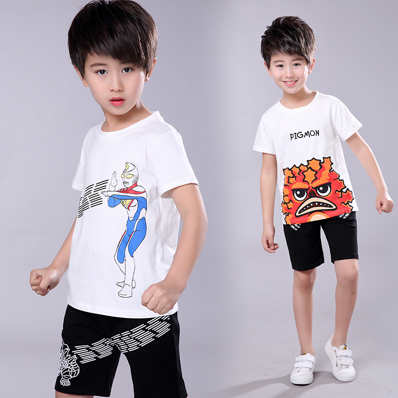 奥特曼怪兽衣服男童夏装 清仓 套装 纯棉潮短袖 潮 男孩儿童装 断码