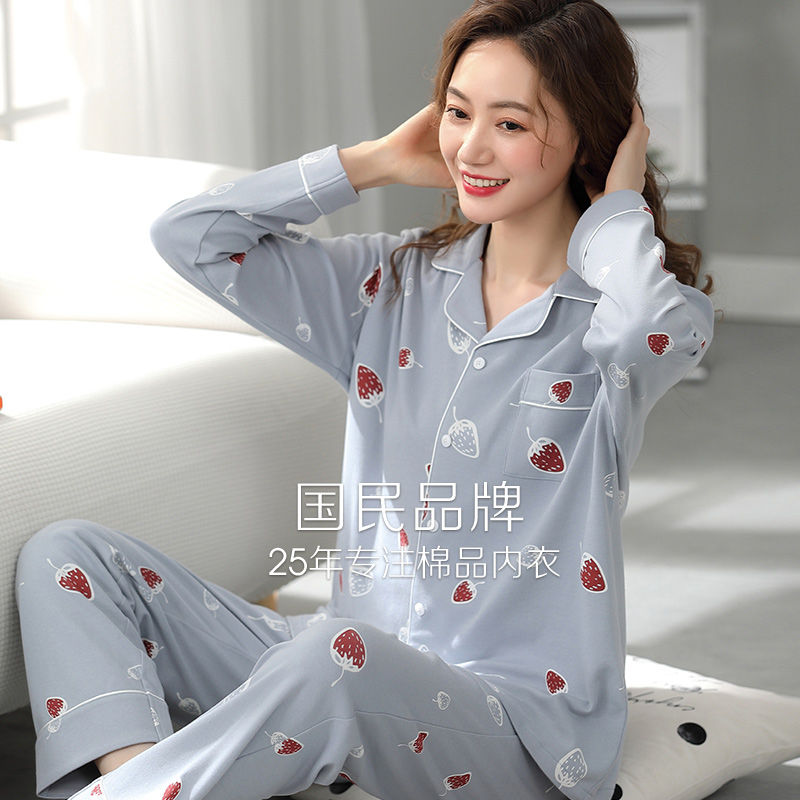 春夏家居服套装 开衫 长裤 新一步2025年睡衣女春秋纯棉长袖