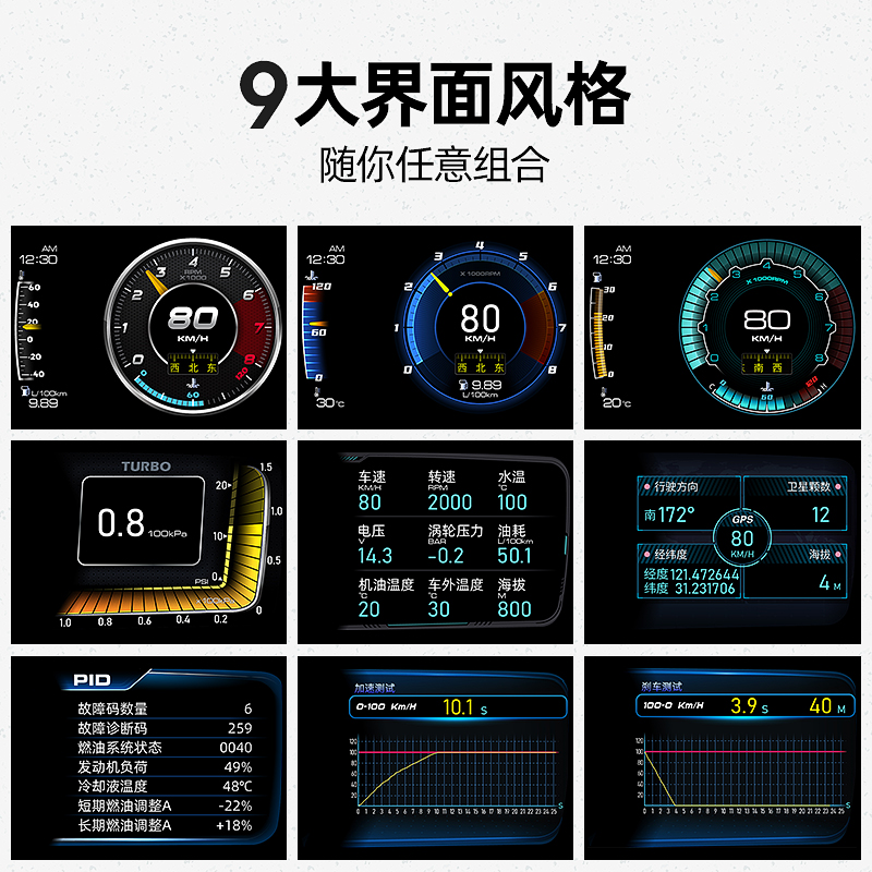 汽车高清obd液晶仪表抬头显示器hud行车电脑gps北斗全车监测 A600