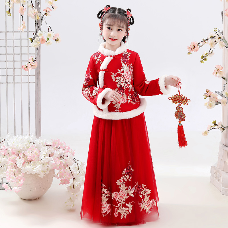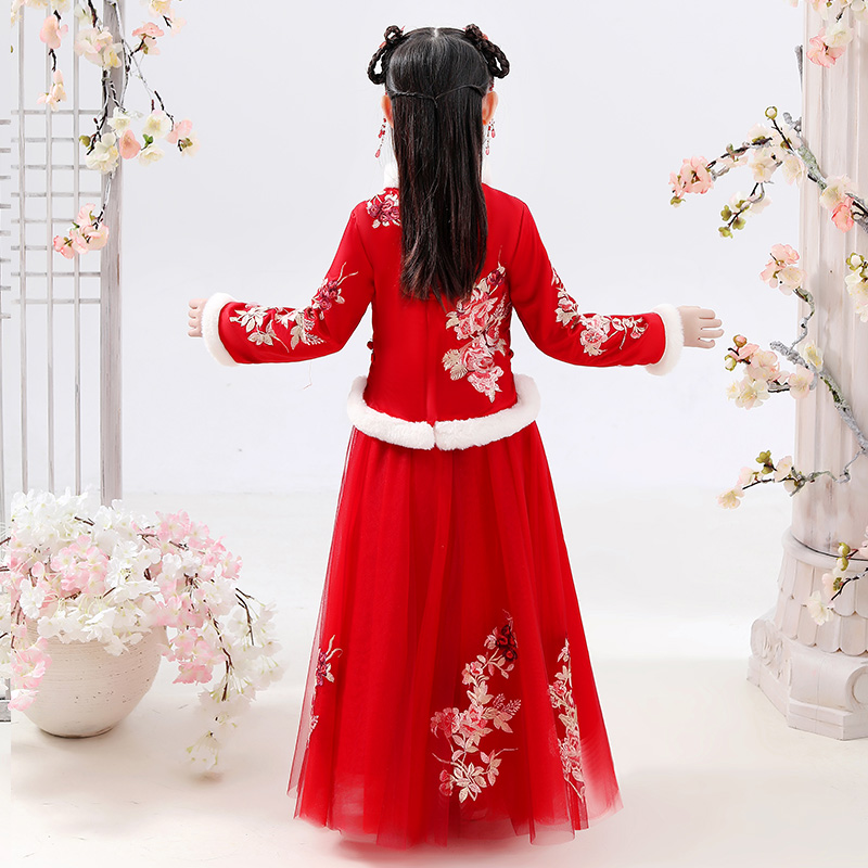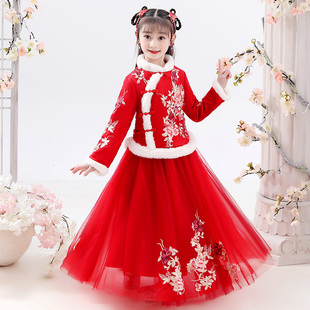 女童汉服中国风古风唐装 小女孩超仙旗袍女宝宝礼服裙加绒加厚冬款