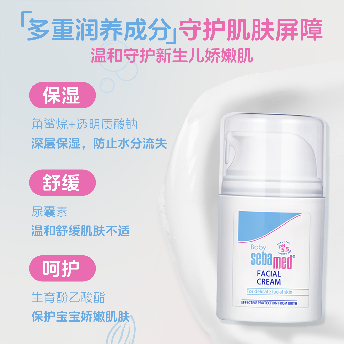 施巴婴儿护面霜儿童孩宝宝新生幼润肤乳保湿 2瓶效期至26.5 脸50ml