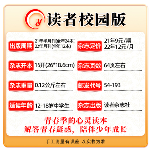 全年 半年 季 读者校园版 2024年1 10月 度订阅 12月青少年儿童文学读者文摘初高中高考作文素材过刊初中学生课外书 杂志2025年1