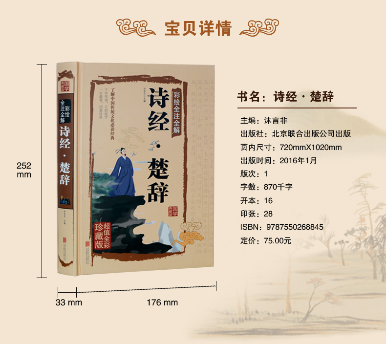 正版 全集 古典诗集诗歌古代诗词国学经典 精装 诗经楚辞鉴赏古诗词 彩绘全注全解 诗经全集 诗经楚辞 原文译文注释文白对照
