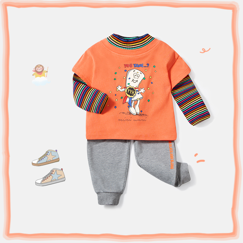 秋款 婴儿上衣潮圆领男女童打底衫 t恤假两件春秋新款 儿童宝宝长袖