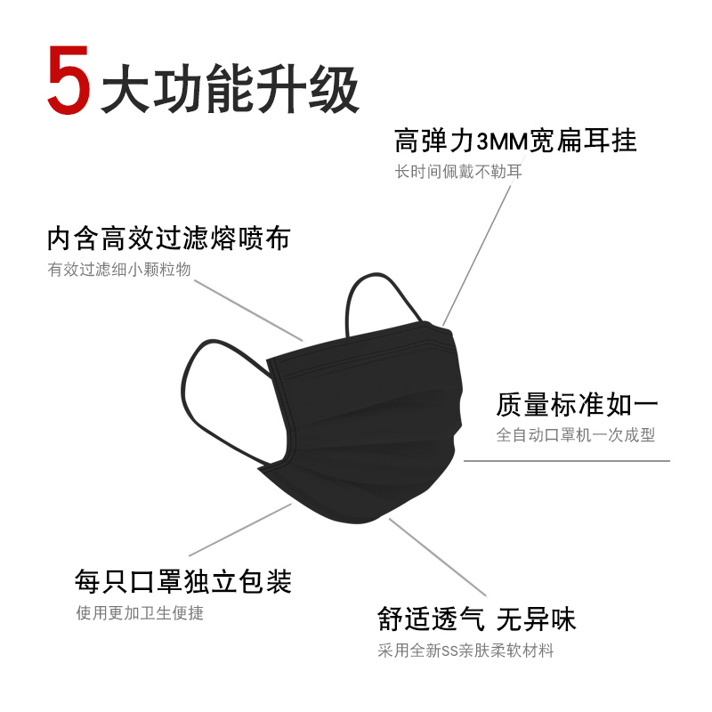一次性防尘防晒三层防护单独包装 黑色口罩女高颜值2025新款 春夏季