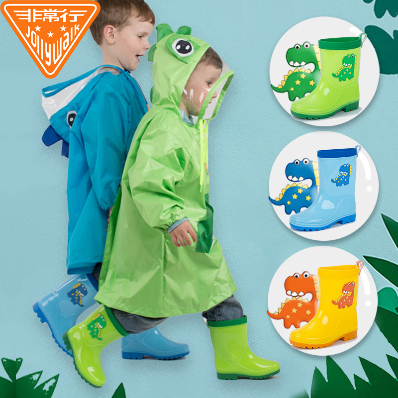 防滑雨靴女小孩幼儿小恐龙防水胶鞋 男童女童宝宝雨鞋 秋季 儿童雨鞋