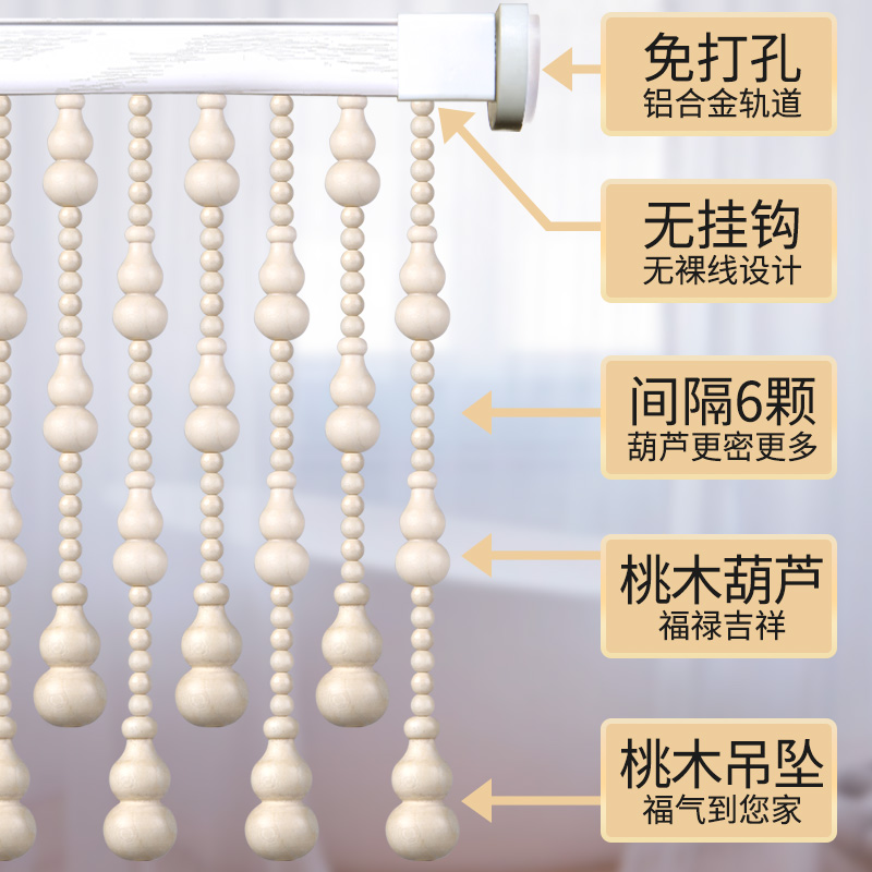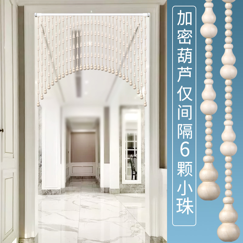 珠帘白色全桃木葫芦门帘大门对卫生间卧室隔断帘门对门挂帘免打孔