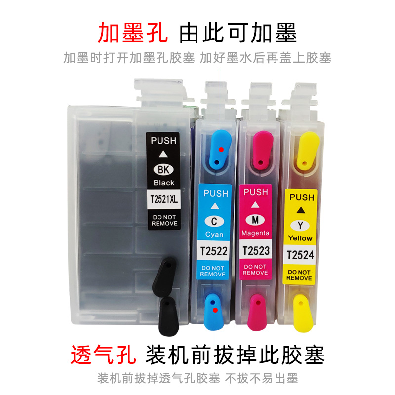 7610 MAG适用 3620彩色打印一体机连供墨盒Epson 7110油墨水盒T252填充墨盒25XL填充连供 爱普生WF7620