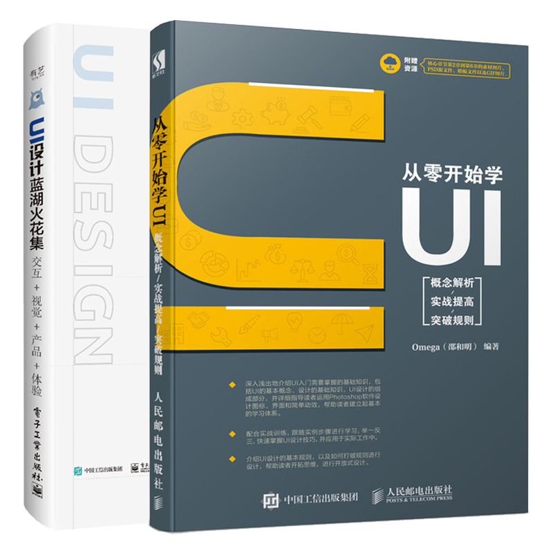 视觉 交互 产品 体验 UI视觉设计交互设计用户体验数据分析技能图书 从零开始学UI概念解析实战提高突破规则 2册 UI设计蓝湖火花集