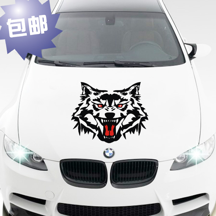 卡通狼头车贴车头盖贴车门引擎机头盖贴纸摩托车拉花个性 汽车贴纸