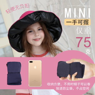 儿童遮阳帽防紫外线遮脸宝宝渔夫帽女童黑胶防晒帽夏季 太阳帽 薄款
