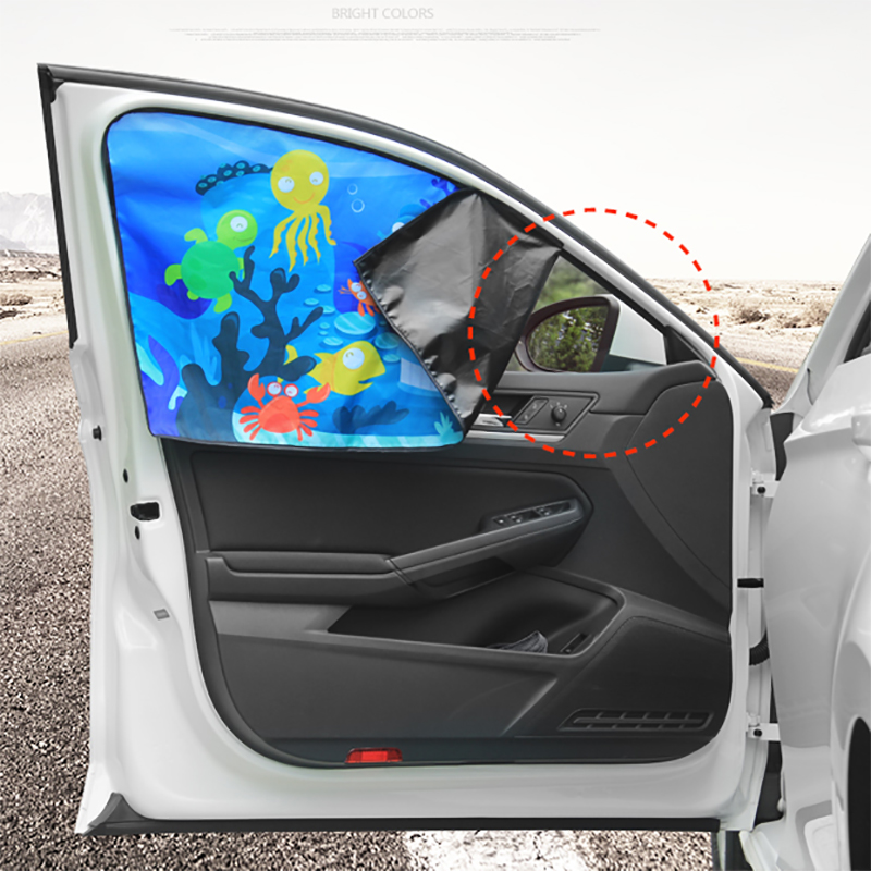 汽车遮阳帘磁铁式 伸缩隔热遮阳板车内防晒网纱车窗帘遮光挡卡通款
