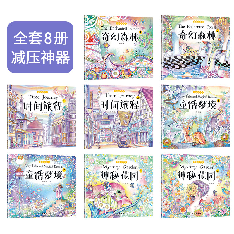 密密花园绘画本儿童版 小脚鸭 神秘花园涂色书正版 大人涂画书成人解压 童话梦境彩绘本减压画册本秘密森林 全8册秘密花园涂色书正版