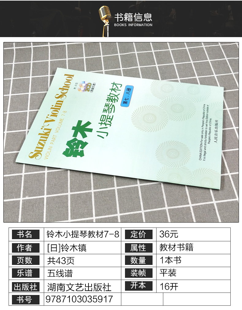 附2CD 第七八册 人民音乐出版 社 小提琴基础曲练习书 正版 儿童小提琴库朗特舞曲小步舞曲G小调奏鸣曲颤音练习教材 铃木小提琴教材