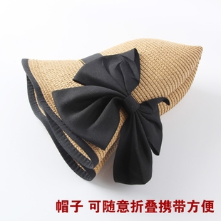 帽子女夏天草帽遮阳帽可折叠太阳帽防晒沙滩帽遮脸大沿帽2025新款