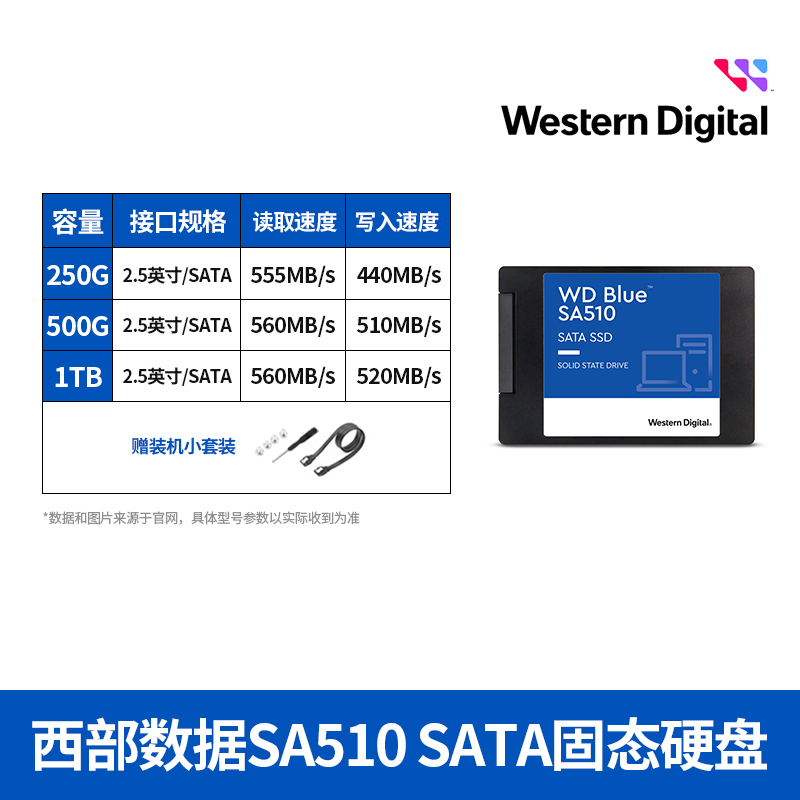 4tb西数蓝盘sa510台式 1t2t ssd 500g WD西部数据固态硬盘SATA250g