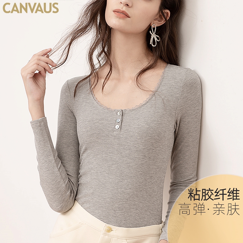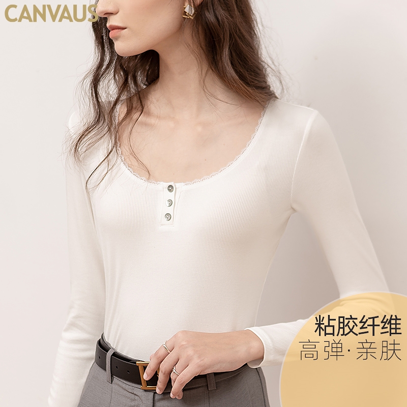 修身 打底衫 百搭上衣服 T恤女春秋内搭短款 设计感小众正肩纯棉长袖