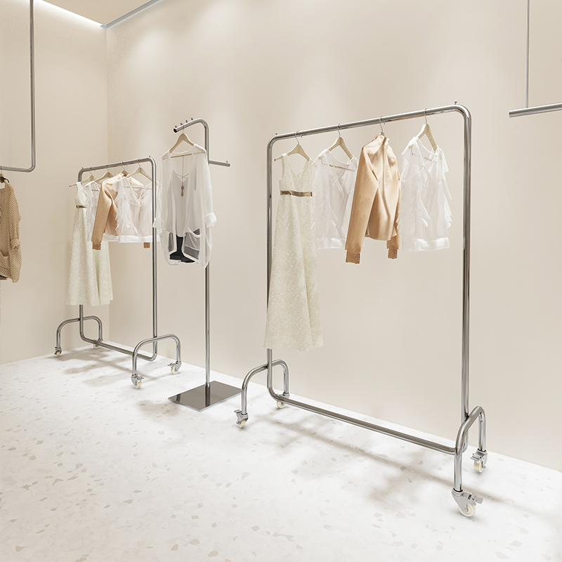 货架展示架 店落地式 服装 店挂衣杆不锈钢带轮子银色中岛陈列架女装