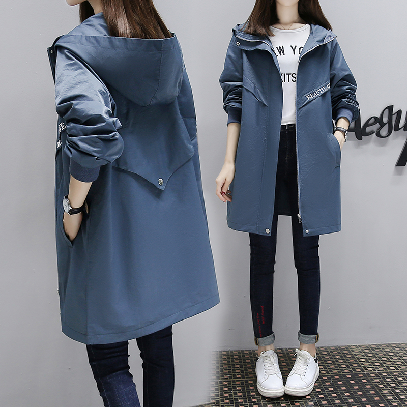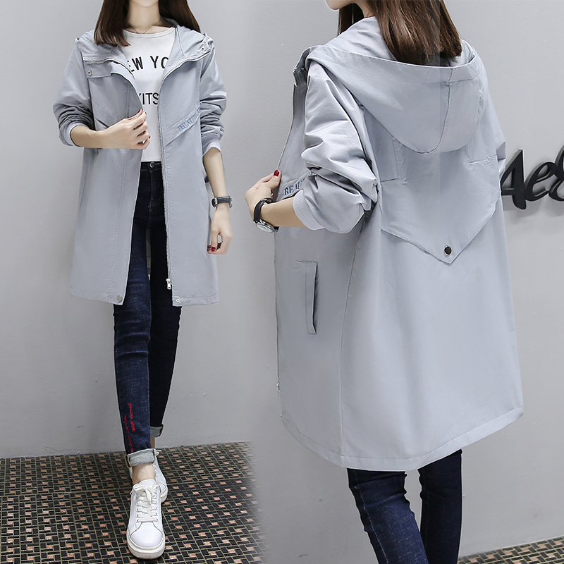 宽松大码 韩版 胖mm显瘦百搭连帽休闲外套 2025春秋新款 风衣女中长款