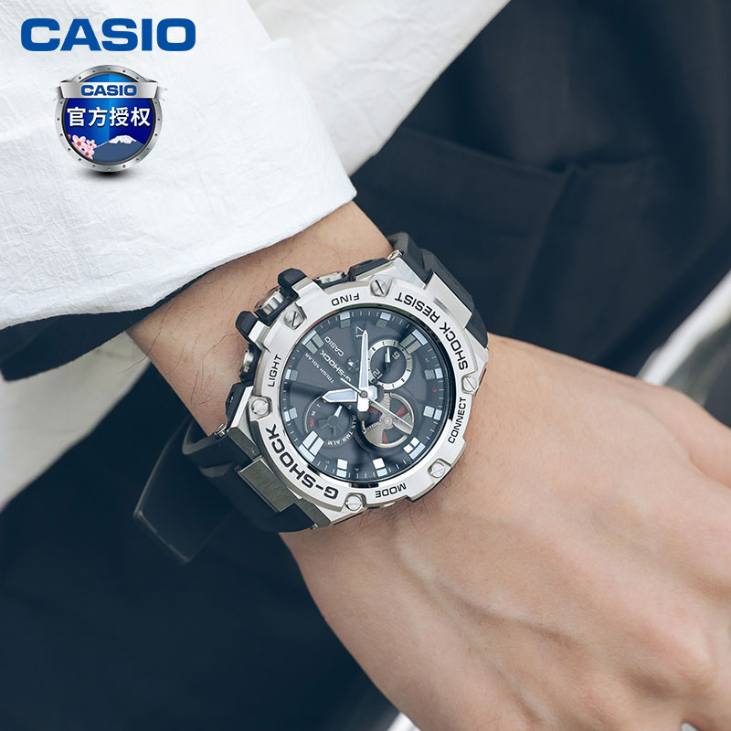 casio卡西欧手表男gshock钢铁之心蓝牙太阳能运动电子表GST B100