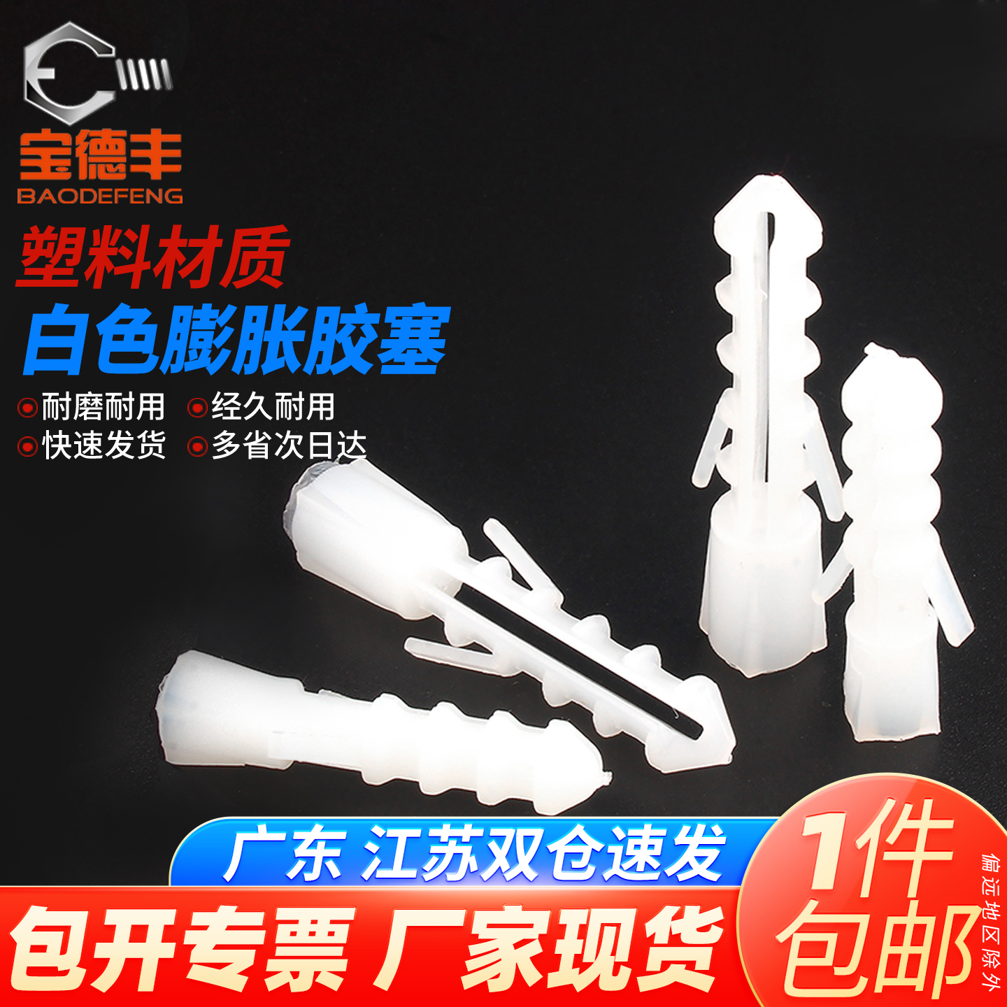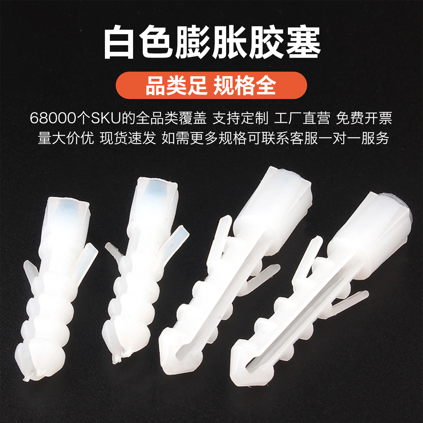 塑料膨胀管白色尼龙螺丝膨胀鱼形胶塞胶粒锚栓墙涨塞自攻膨胀M6M8