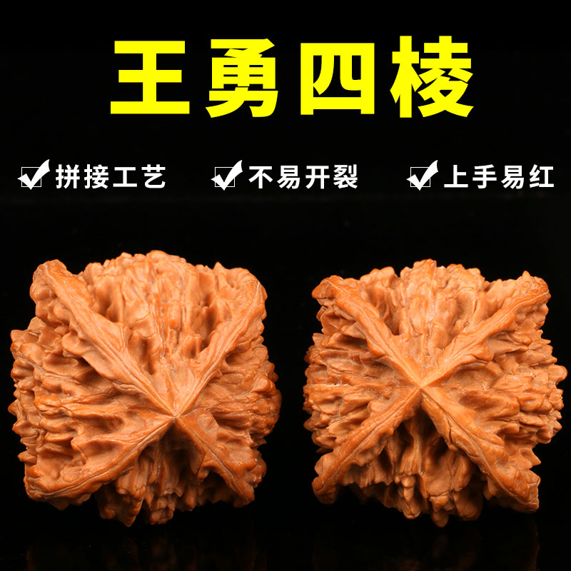 文玩核桃四棱王勇大官帽拼接核桃盘玩手把件四道筋异型核桃工艺品