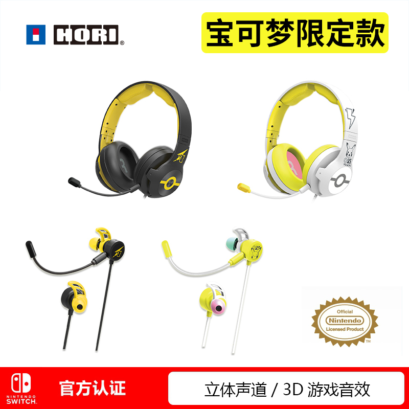 耳机耳麦 皮卡丘 宝可梦 HORI原装 switch NS专用游戏耳机hori入耳式 NS耳机 立体声 任天堂Switch