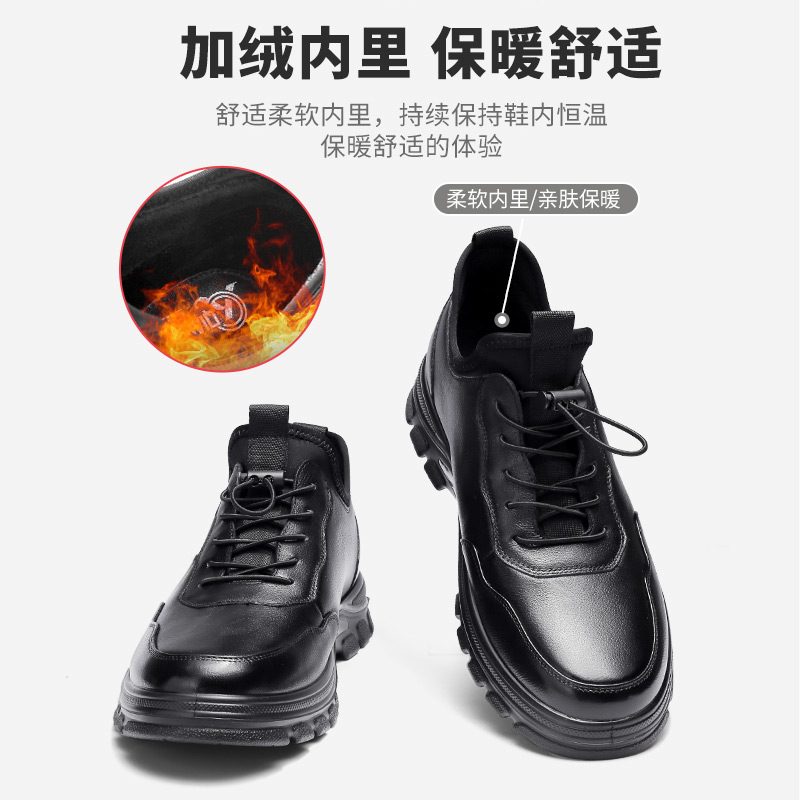 青年潮流鞋 强人3515冬季 真皮百搭休闲皮鞋 保暖加绒运动皮鞋 子 男鞋