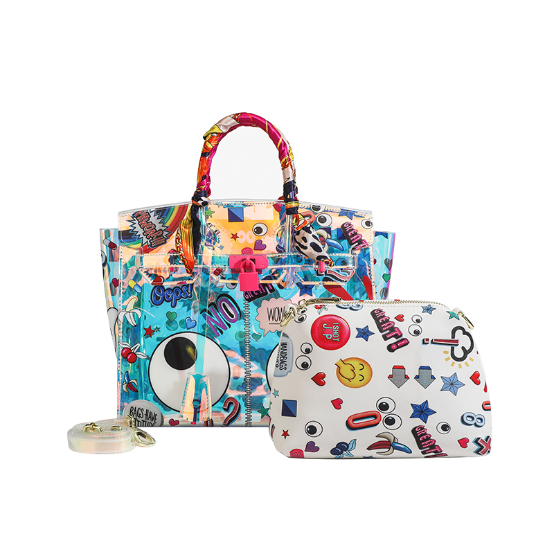 镭射透明包包高级感果冻手提袋女士定制pvc小众铂金幻彩新款 时尚
