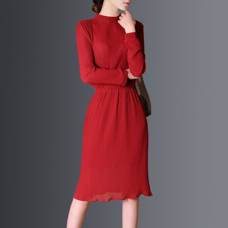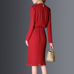 修身 2025春装 简约气质OL九分袖 女装 雪纺连衣裙A34 新款