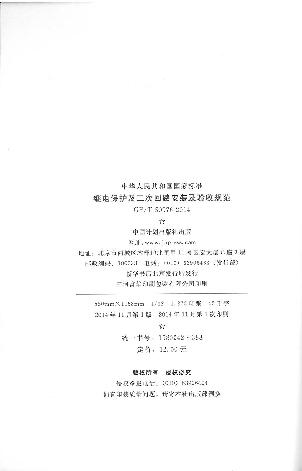 继电保护及二次回路安装 2014 50976 及验收规范