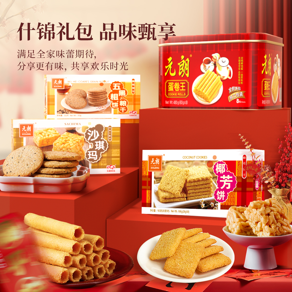 蛋卷糕点礼盒320g 良品铺子蛋黄酥礼盒800g港式 88vip积分兑换