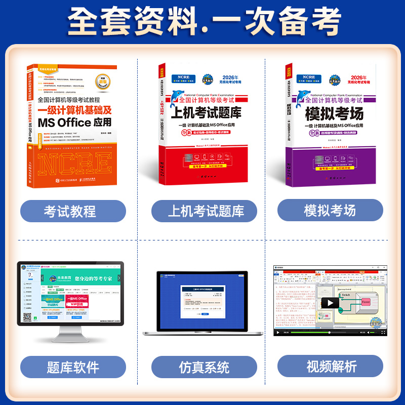 备考未来教育2026年3月全国计算机等级考试书一级ms 上机考试题库模拟考场试卷及一级MSOffice应用无纸化题库教材2024 office教程