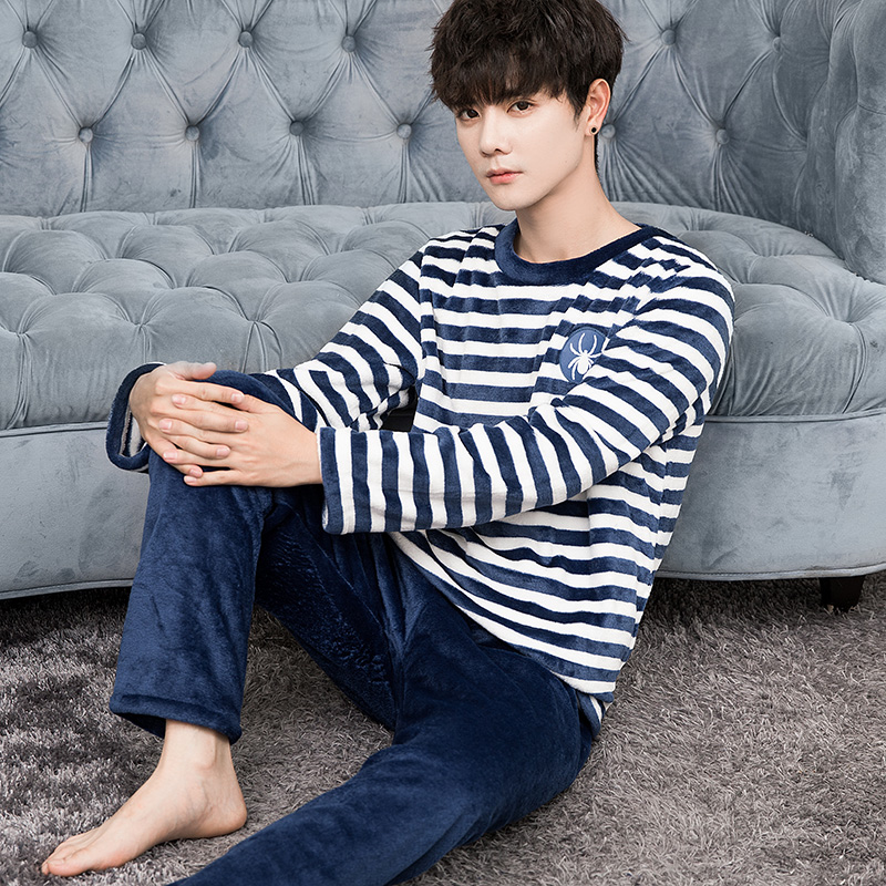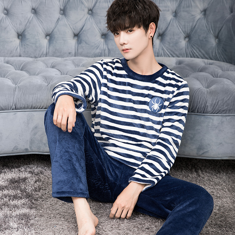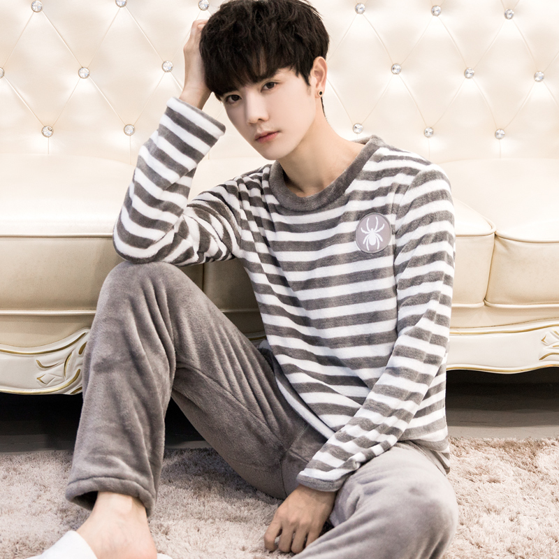 冬天套装 睡衣男士 珊瑚绒加绒加厚保暖法兰绒家居服男款 冬季 秋冬款