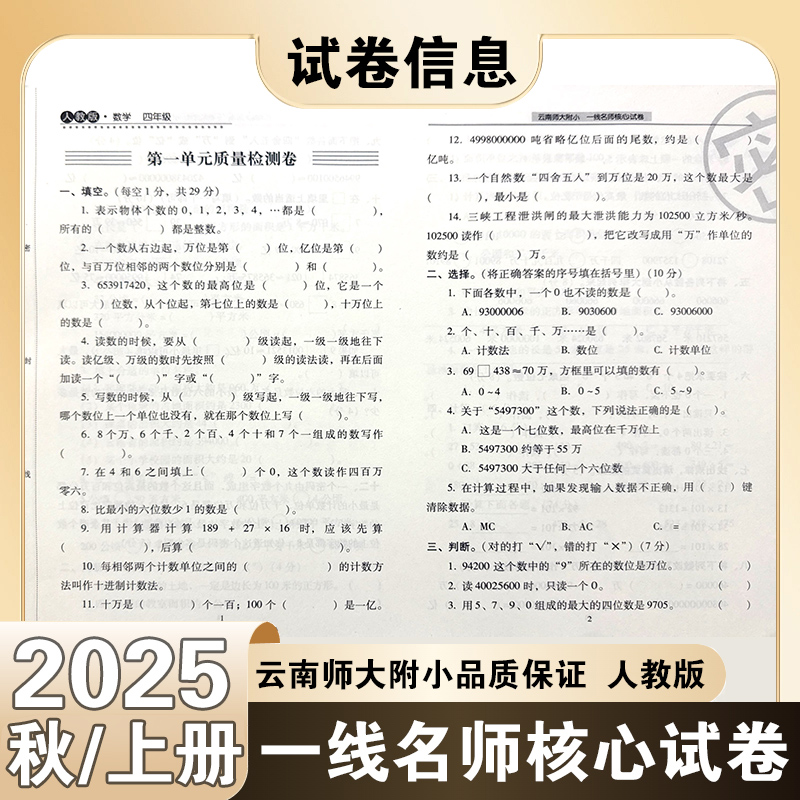 2025秋云南师大附小一线名师核心试卷一二三四五六年级下册语文数学书人教版 同步训练小学同步练习辅导书小学语文数学同步辅导书