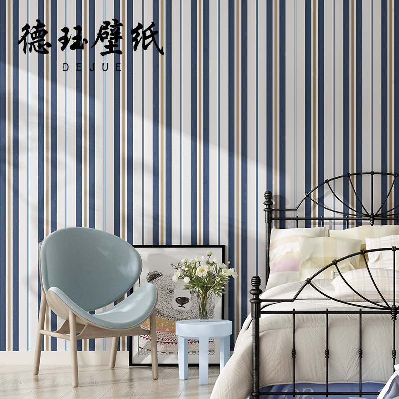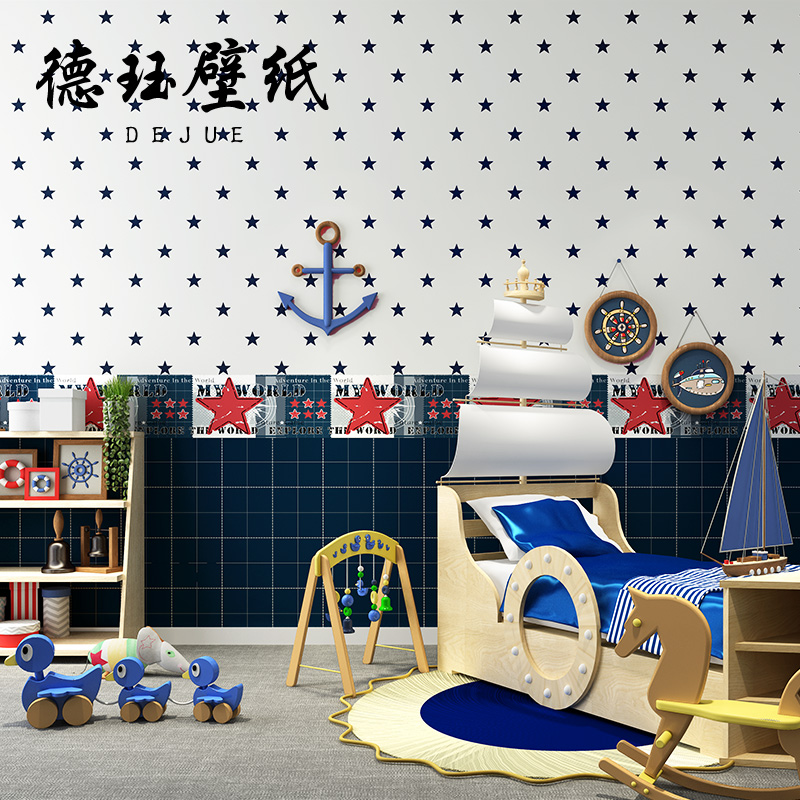 地中海风格 儿童房壁纸男孩卡通女孩卧室地图星空蓝色格子墙纸男生