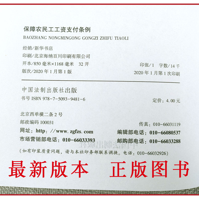 正版 法律法规规范工资支付行为 保障农民工工资支付条例 社 农民工工资支付适用本条例 单行本中国法制出版 2020新版